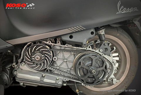 The KOSO Blackout Clutch Kit (FN907300) is the definitive rear transmission upgrade for the Vespa i-Get 150. This kit reduces rotational mass and maximizes power delivery, resulting in faster acceleration and immediate response.