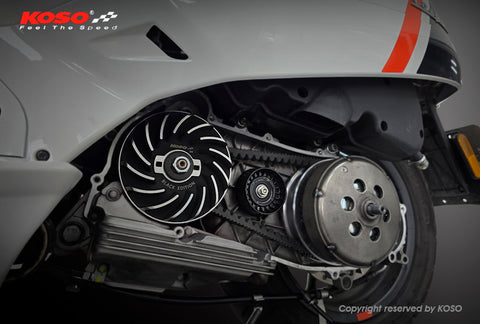 The KOSO Transmission Power Kit (FN808000) is engineered to unleash the full potential of your Vespa GTS 300. This is a complete, high-performance upgrade focused on maximizing acceleration and efficiency.